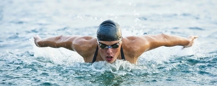Дисквалификация в баттерфляе за неодновременные движения руками до последнего гребка перед поворотом или финишем.